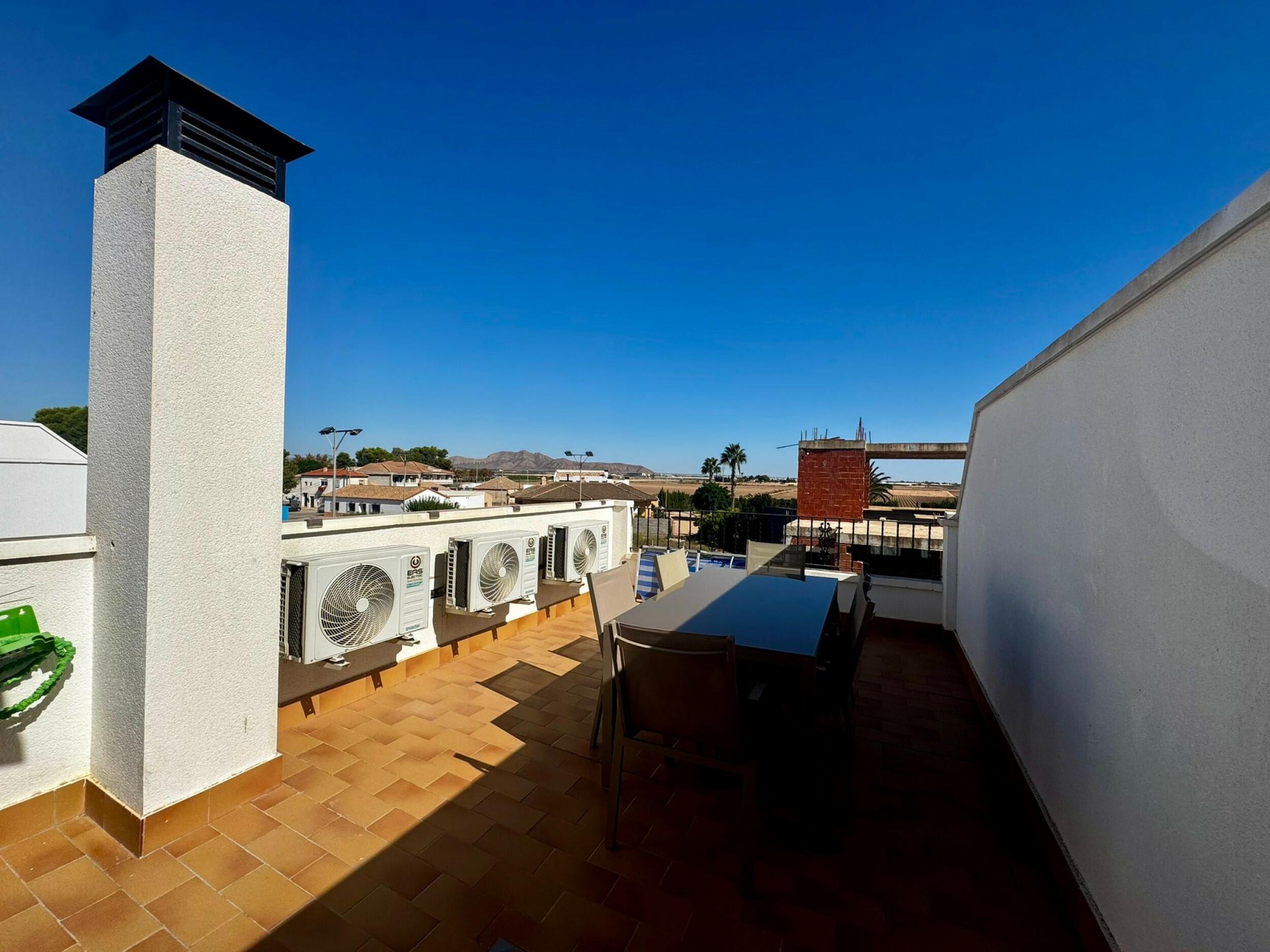Great Buy. Fully Furnished End Townhouse with Communal Pool and Rooftop Solarium in Santa Rosalia Village, Torre-Pacheco
